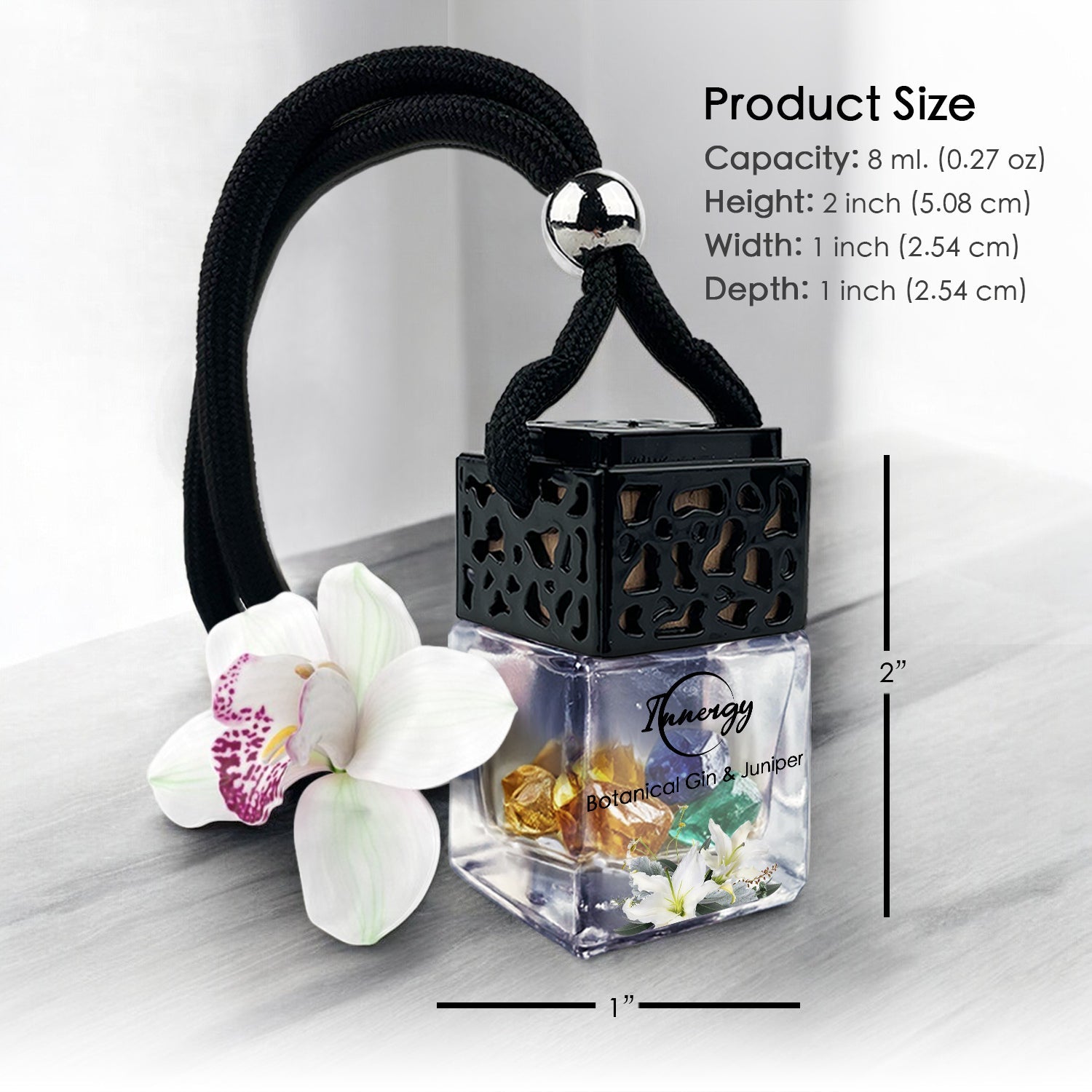 Elevate your driving experience with the refreshing scent of Botanical Gin and Juniper, embodied in our Crystal-Enhanced Car Diffuser. With notes of juniper, geranium, cypress, and mint. Immerse yourself in the botanical essence that harmonizes perfectly with meticulous and earthy vibes.
