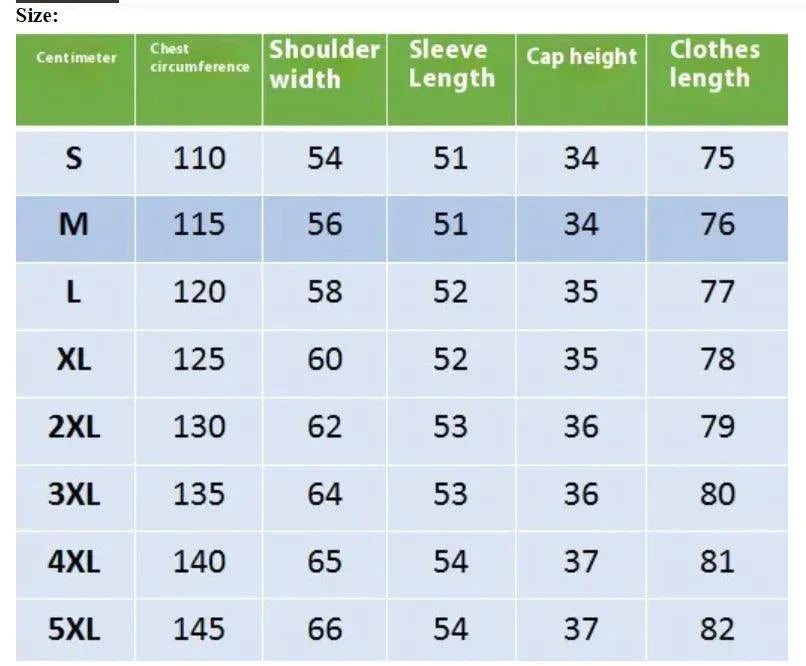 S, M, L, XL, XXL, XXXL, 4XL, 5XL