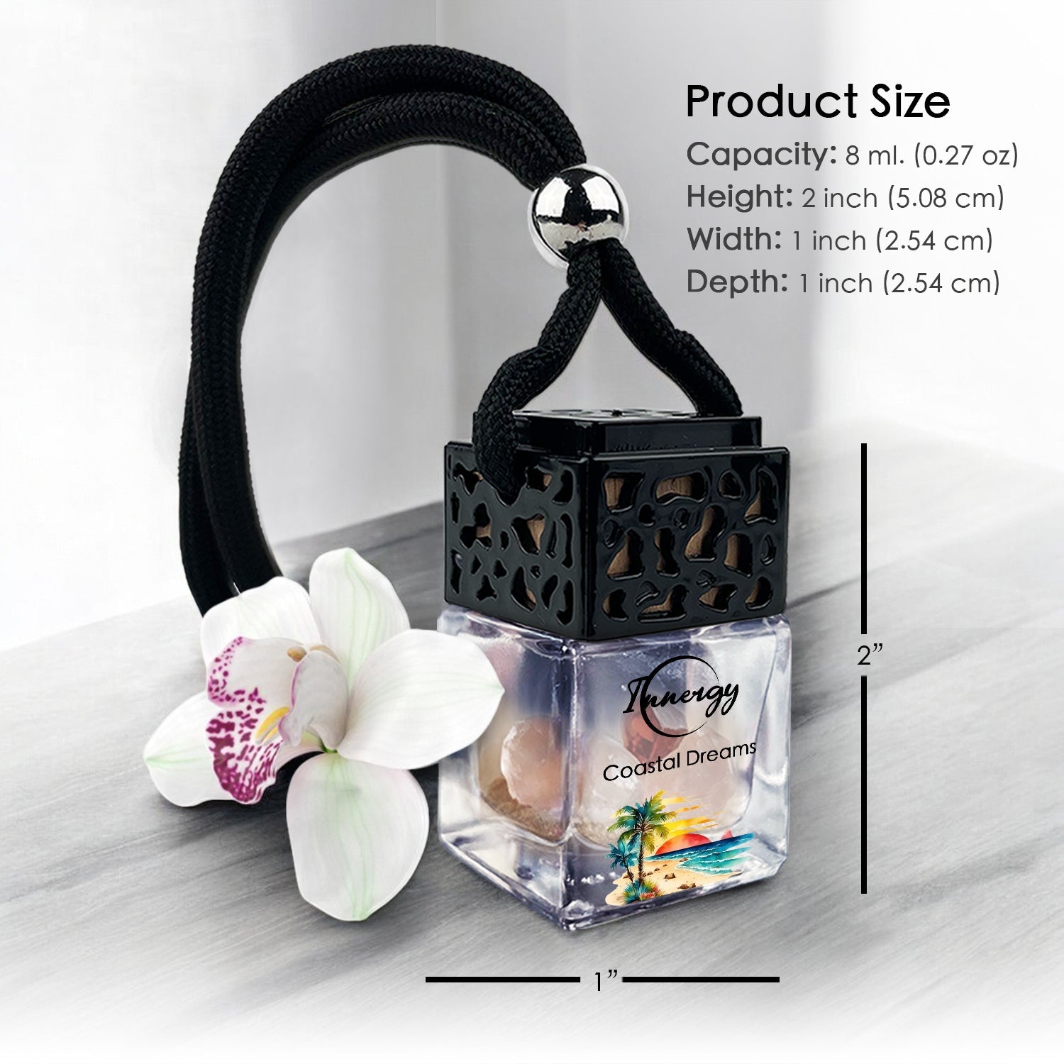Immerse yourself in the soothing vibes of our Crystal-Enhanced Car Diffuser, infused with the calming scent of Coastal Dreams, featuring notes of seaside plumeria, aquatic nuances, ylang-ylang, and jasmine. This serene fragrance brings tranquility and a connection to nature.